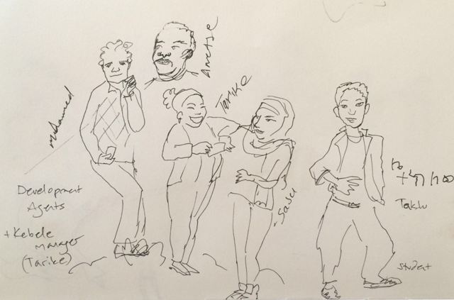 These guys were watching us visit the beekeeping centre. They work for ADHENO, but Tarike is the kebede (village) manager.