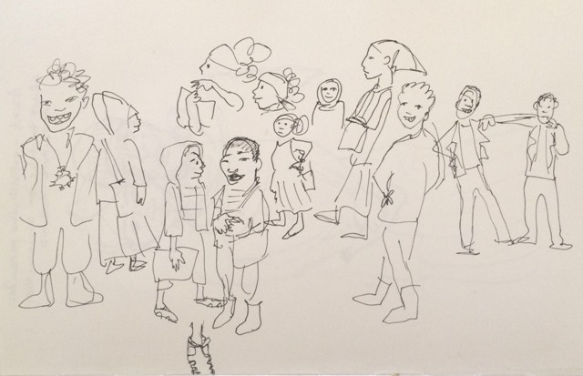Quick pencil sketches from a cultural event at Caracol Oventic, one of the civic centres of the Zapatista movement for indigenous autonomy.