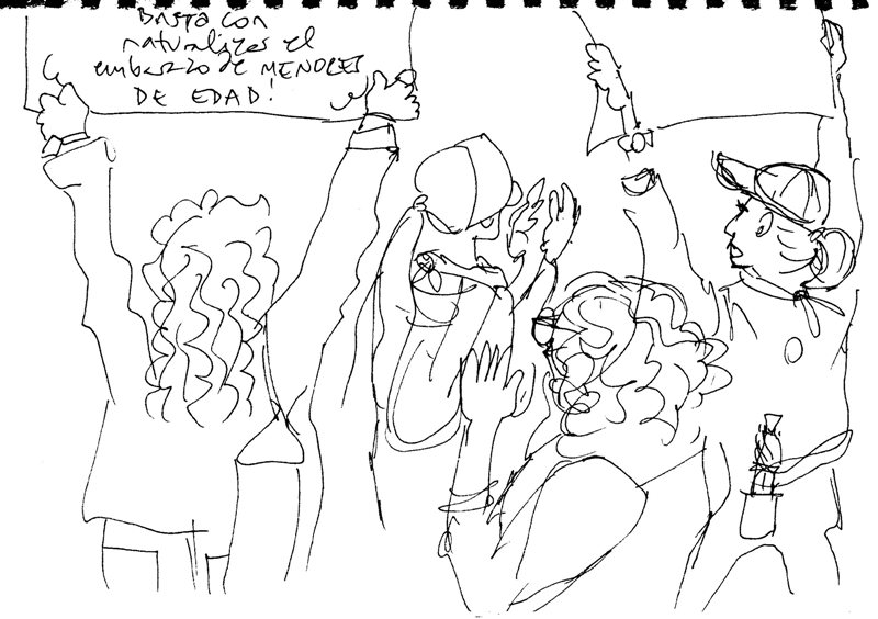 More croquis from the EZLN International Festival for Women who Fight! (Although the verb luchar in Spanish in this case means “struggle” as in “the ideological struggle” , rather than actually fighting. It also means wrestling, as in lucha libre. Fun with etymology.)