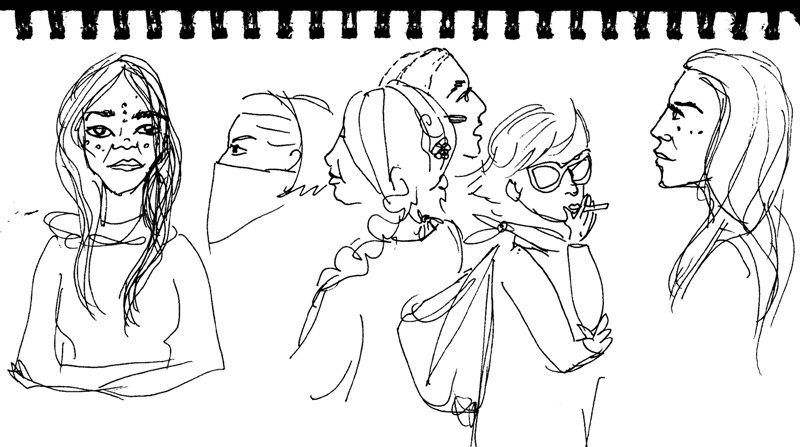 I drew these women during a really confused lecture on “Dismantling The Man into Things”. Hence the sceptical faces.