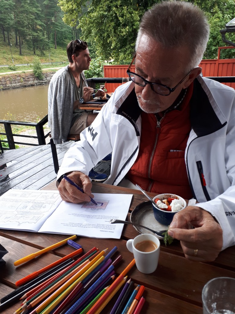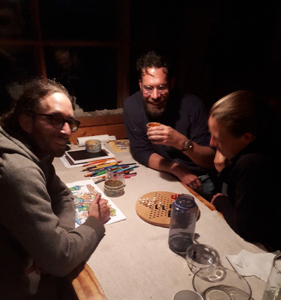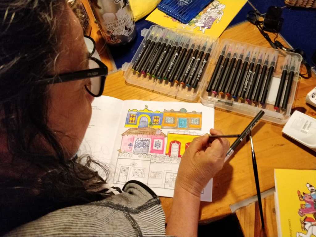 Check this out, grown people from the ages of 22 to 72 having a whale of a time colouring in Sancris street scenes! Accompanied by tea, mezcal, campari, espresso, chocolate and fruit panna cotta, but most importantly by good people!