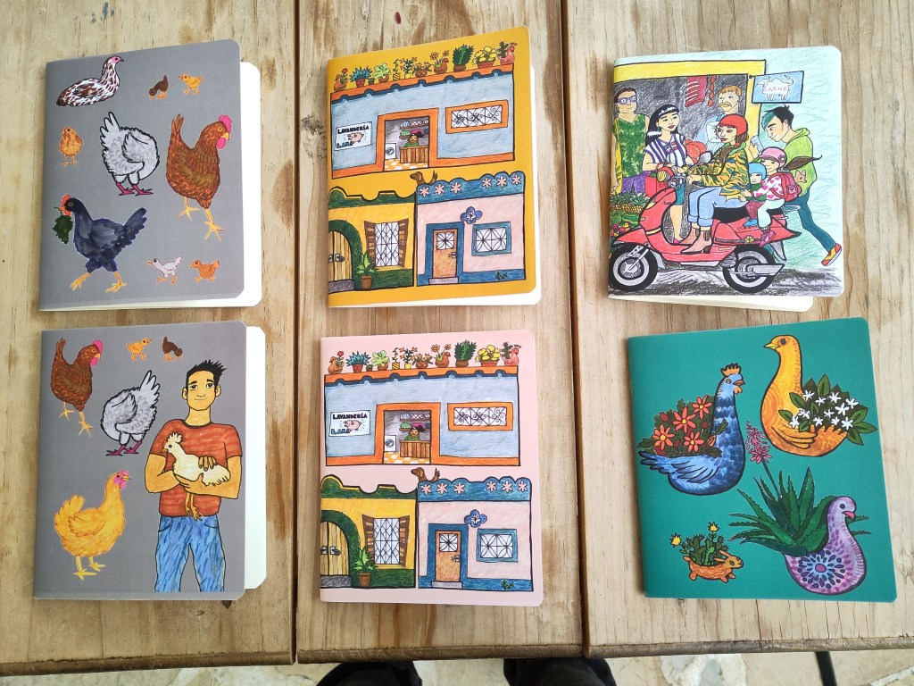 Strutting chicken, lurking pigeon: new designs fun, Mexico It was time to make new notebooks, stickers and postcards for my Colour San Cristóbal line. Fun! Share this: Share on X (Opens in new window) X Share on Facebook (Opens in new window) Facebook Share on Tumblr (Opens in new window) Tumblr Email a link to a friend (Opens in new window) Email Share on Pinterest (Opens in new window) Pinterest Like Loading...