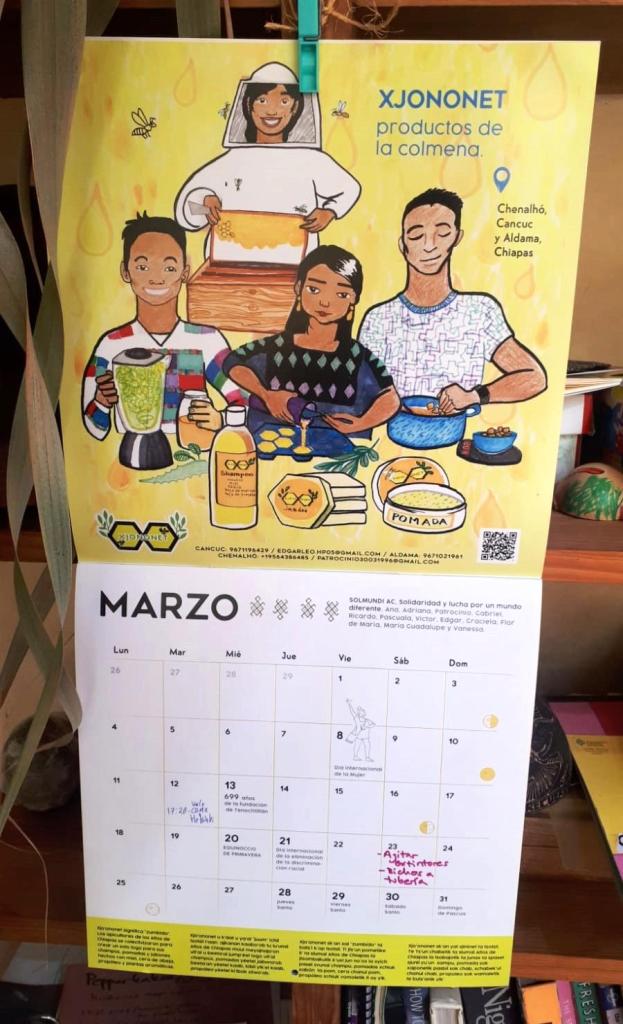 Here’s the February calendar page for the beekeeping group Xjononet – meaning “buzz” in tsotsil!