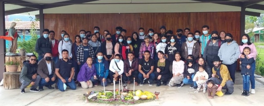 The December drawing references the Maya altars that we had been using in CAJAC learning events to celebrate Indigenous culture and agriculture. The altars arrange produce, candles, leaves and flowers in the four colours of the compass, but for this drawing I depicted eight of our participants from the four participating states: Yucatan (north), Quintana Roo (east), Chiapas (south), and Campeche (west).