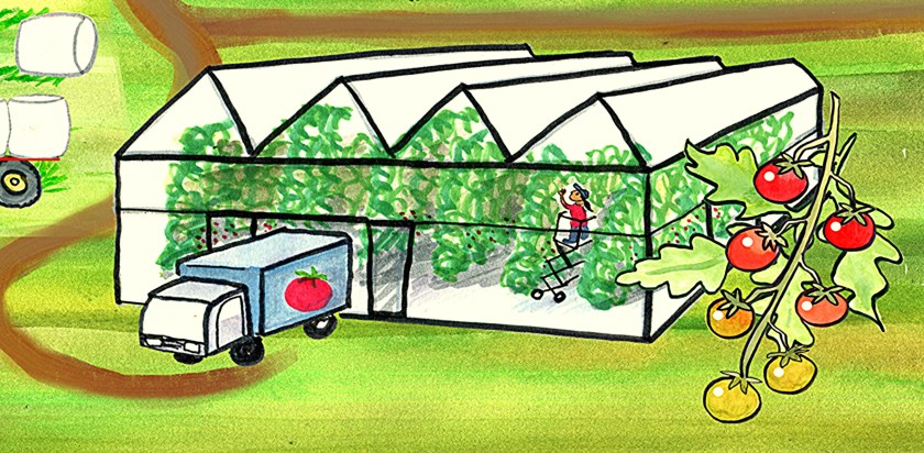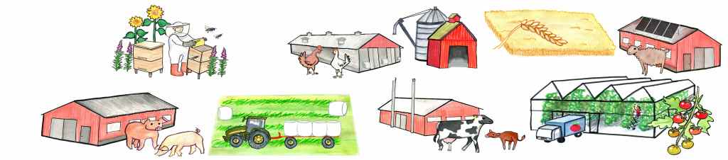 My brief was to illustrate an Ostrobothnian (a province on the west coast of Finland) rural landscape with crops and livestock, wheat and greenhouses… FarmerTime Finland is a project that links schoolkids to farmers in real time. They also have a bunch of fascinating videos straight from the farms – and now, the interactive Thinglink that contains videos, quizzes and information.